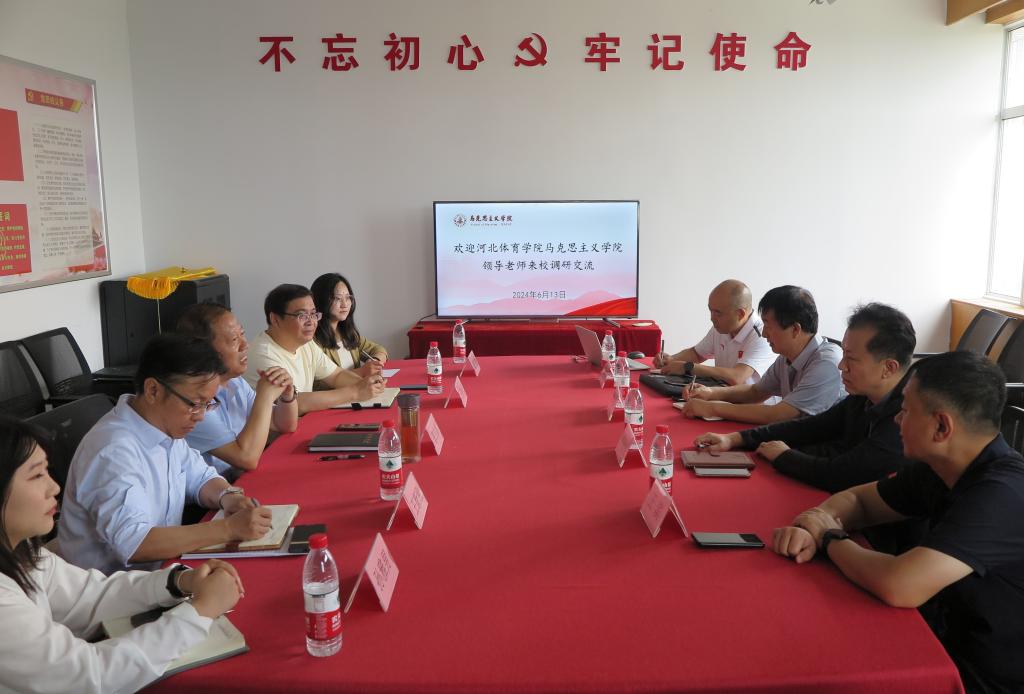 2024年6月13日,河北体育学院yl8858永利集团院长周德胜一行5人来我校调研交流。yl8858永利集团党委书记、副院长、教学部主任等参加了此次活动。