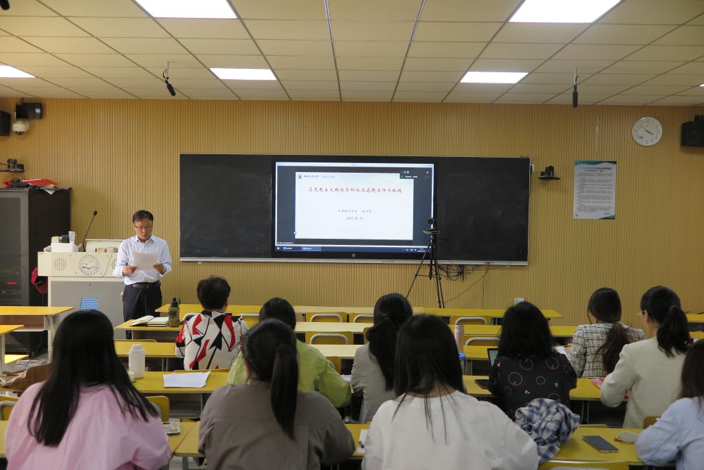 2024年5月23日,yl8858永利集团举办马克思主义理论学科论文选题与写作讲座。学院相关领导和教师参加了讲座。讲座由学院科研负责人主持。